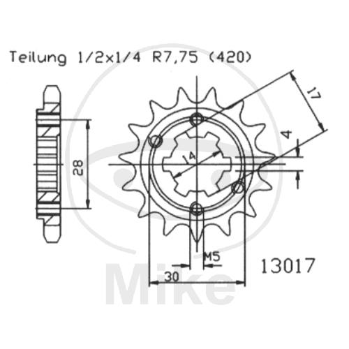 Ritzel, 13Z, Teil.: 420, grobverzahnt 6, Innen Ø : 14/17