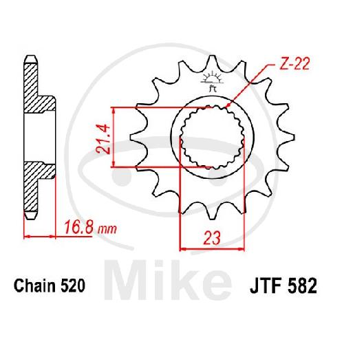 Ritzel, 16Z, Teil.: 520, feinverzahnt, Innen Ø : 21.3/23