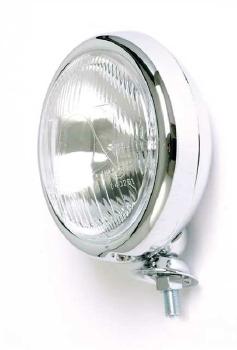 4-1/2 Zoll Fernscheinwerfer, flaches, verchromtes Metallgehäuse, Durchmesser 123 mm, Tiefe 55 mm, H3 Einsatz 12V/55W, zur unteren Befestigung, inklusive H3 Glühlampe