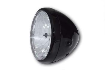 Runder Hauptscheinwerfer mit verchromtem Gehäuse zur seitlichen Befestigung. Dank seines puristischen, zeitlosen Designs ist er ein Highlight für viele Motorräder. Der Scheinwerfer verfügt über einen H4- Einsatz mit Fern-Abblend- und Standlicht-Funktion sowie einen symmetrischen Prismenreflektor und klarem Kunststoffglas, E-geprüft