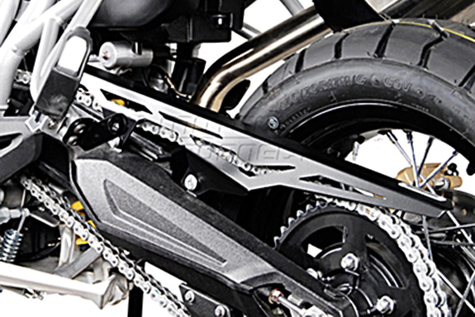 Solide Konstruktion und leicht auszuführende Montage, Gummigelagerte Befestigung, Passend zum Erscheinungsbild des MotorradesLieferumfang: Kettenschutz Alu, Installationsmaterial, AnbauanleitungBesonderheiten: Der Kettenschutz ist länger als der originale. Kettenöl/Fett wird nicht auf den Fahrer geschleudert.