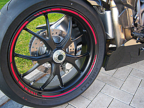 Die Aufkleber werden mit einer Transferfolie geliefert, mit denen Sie sehr einfach auf die Felgen aufgeklebt werden können. Sie können aus einer Vielfalt an Farben wählen.