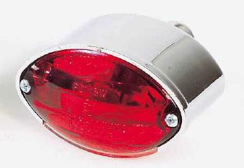 <p>SHIN YO Rücklicht / Bremslicht Micro-Cat-Eye Kleines ovales Rücklicht in Schwarz oder Chrom mit rotem Glas und Nummernschildbeleuchtung, E-geprüft.