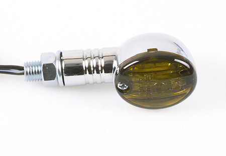 Mini-Blinker mit verchromten Kunststoffgehäuse und getöntem Glas.