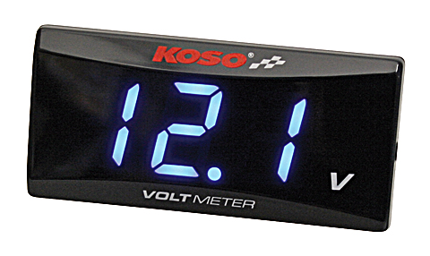 Batteriespannungsanzeige KOSO für alle 12 V Batterien, mit Warnanzeige bei Spannungsabfall unter 11,5 Volt.