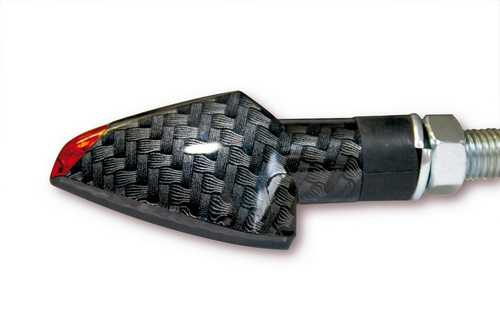 SHIN YO LED-Blinker PEAK,schwarz, getöntes Glas, gelbes Glas an der Spitze vom Gehäuse, kurzer Stiel, 11+12 E-geprüft, Paar.