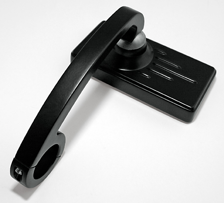 Schwarzer Spiegel mit rechteckigem Spiegelkopf. Das kompakte Modell für Naked Bikes. Passend für 1 Zoll (25,4 mm) und 7/8 Zoll (22 mm) Lenker. Für die rechte und linke Seite verwendbar.