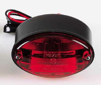 Rücklicht / Bremslichtfunktion mit schwarzem Kunststoffgehäuse, rotem Glas und Kennzeichenbeleuchtung, E-geprüft.