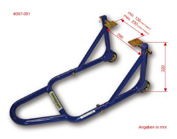 Leichtlaufenden Rollen für sicheres Heben und Senken des Motorrades. Gute Halt- und Standfestigkeit.