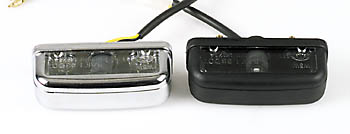 Nummernschildbeleuchtung, schwarzes Gehäuse, Abmessungen: Höhe 29 mm, Breite 85 mm, Tiefe 42 mm