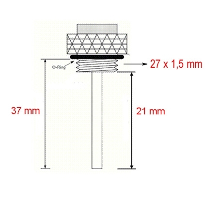 Öltemperaturmesser, Gewinde x Steigung: 27 x 1,5 mm, Nadellänge: 21 mm, komplette Länge mit Gewinde: 37 mm