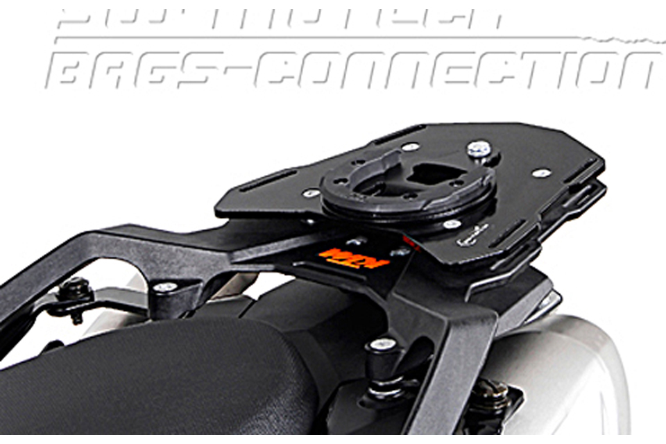 Zur Befestigung eines QUICK-LOCK Tankrucksacks auf einem SW-MOTECH ALU-RACK