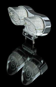 LED-Mini-Rücklicht, rund, mit Halter, Glas transparent, verchromt