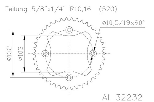 Alu Kettenrad für KTM Modelle mit 520er Kettenteilung, 38 Zähne.