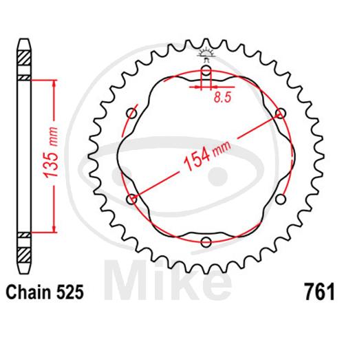 Alu-Kettenrad, 38Z, Teil.: 525 silber, für Kettenradträger 7585029