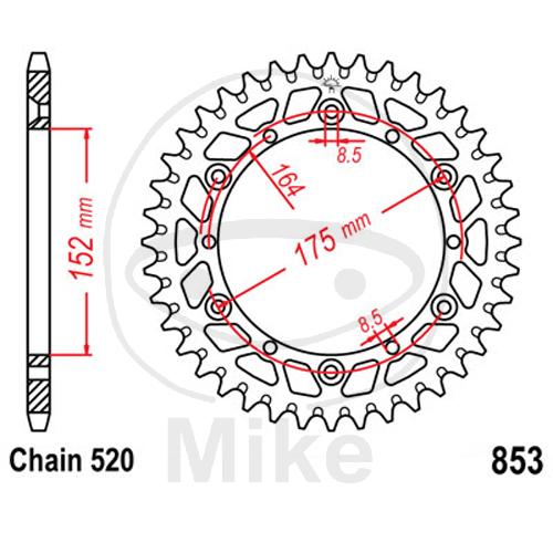 Alu-Kettenrad: 40Z, Teil.: 520 silber, JT, Innen Ø : 152, Lochkr.: 175