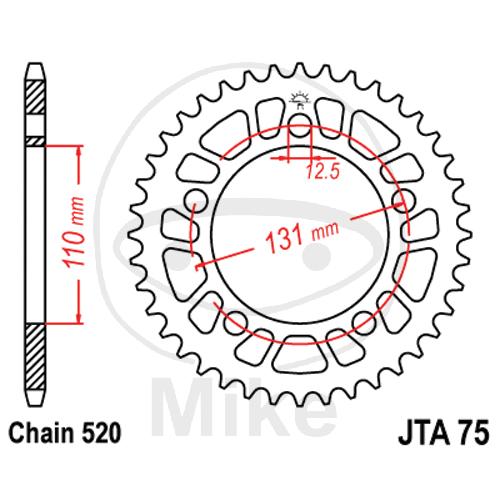 Alu-Kettenrad, 41Z, Teil.: 520 silber, JT, Innen Ø : 110, Lochkr.: 131