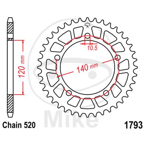 Alu-Kettenrad, 42Z, Teil.: 520 silber, JT, Innen Ø : 120, Lochkr.: 140