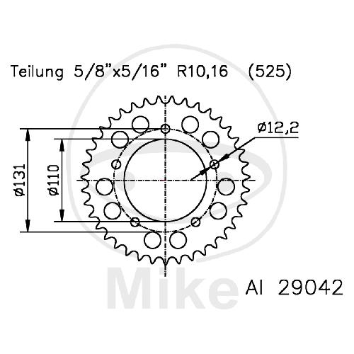 Alu-Kettenrad: 44Z, Teil.: 525 silber, Esjot, Innen Ø : 110, Lochkr.: 131