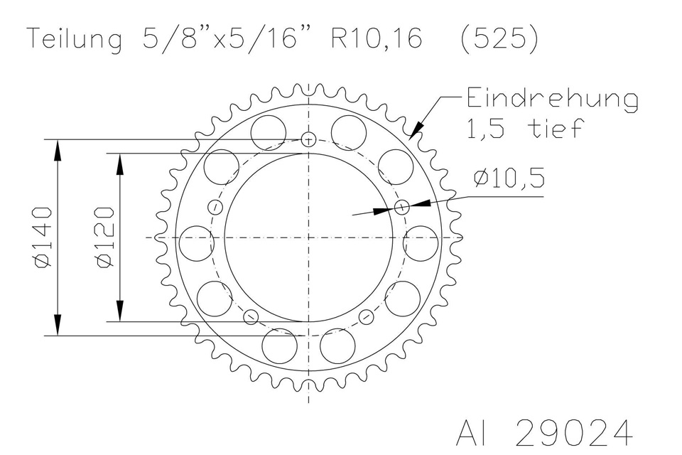Alu-Kettenrad 47 Zähne 525er Teilung (5/8x5/16)