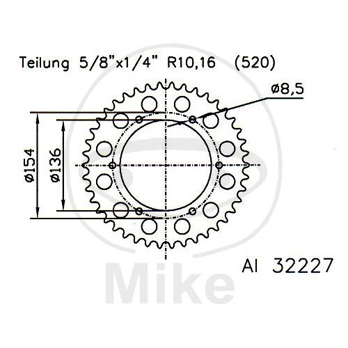 Alu-Kettenrad: 47Z, Teil.: 520 silber, Esjot, Innen Ø : 136, Lochkr.: 154