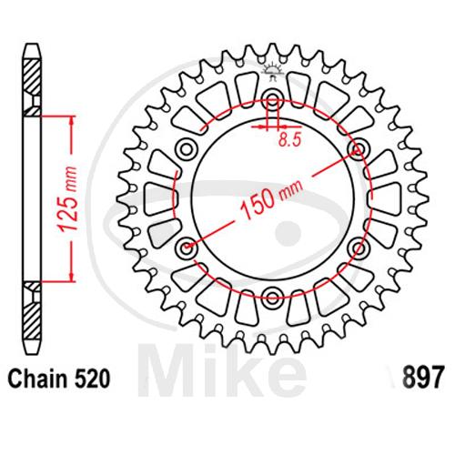 Alu-Kettenrad, 49Z, Teil.: 520 silber, JT, Innen Ø : 125, Lochkr.: 150