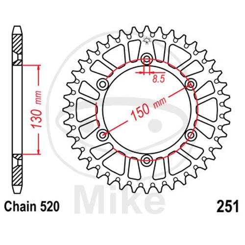 Alu-Kettenrad: 52Z, Teil.: 520 silber, JT, Innen Ø : 130, Lochkr.: 150