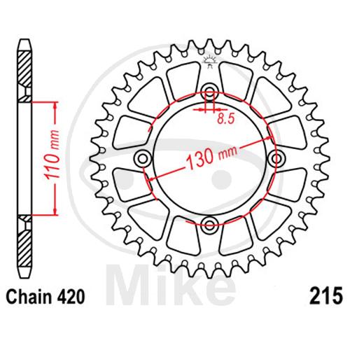 Alu-Kettenrad: 55Z, Teil.: 420 silber, JT, Innen Ø : 110, Lochkr.: 130