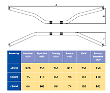 ABM Superbikelenker BOOSTER, Alu, silber, Typ 0429. Lenkerendendurchmesser 22 mm, Lenkermitte 28,5 mm, Höhe 110 mm, Breite 750 mm.