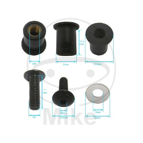 JMP Verkleidungsschrauben-Satz Schrauben für Verkleidungsscheiben und Verkleidung Inhalt: 8x Aluschrauben (5 x 16 mm) mit Innensechskant, schwarz 8x Kunststoffscheiben, klar 8x Gummimuttern, schwarz