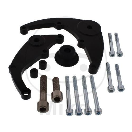 LSL Sturz- Pad Montagekit schwarz mit Adapterplatte - modellspezifischer Anbausatzaus hochwertigem Aluminium - wird verschraubt über dem Motordeckel - Farbe : schwarz