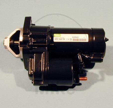 Valeo Motorrad Anlasser Neuteil vom Erstausrüster. Beide Anlassertypen arbeiten mit einem Untersezungsgetriebe und haben trotz erhöhter Leistung nur noch die Hälfte des Gewichts bzw. der Abmessungen und reduzieren den Zeitfaktor beim Kaltstart.