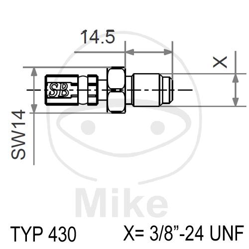 Fitting für Speed Brakes Stahlflex Vario Leitung - Aussengewinde - lose - Gewinde 3/8" - 24UNF - Schlüsselweite 14 - Länge Gewinde 15 - Länge 24 mm
