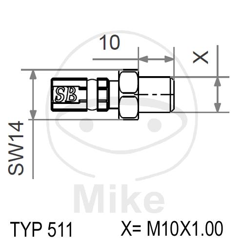 Fitting für Speed Brakes Stahlflex Vario Leitung - Aussengewinde - fest - Gewinde M10 x 1.00 - Schlüsselweite 14 - Länge Gewinde 10 - Länge 19 mm - Farbe: silber