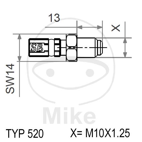 Fitting für Speed Brakes Stahlflex Vario Leitung - Aussengewinde - fest - Gewinde M10 x 1.25 - Schlüsselweite 14 - Länge Gewinde 13 - Länge 22 mm - Farbe: rot