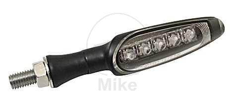 KOSO LED-Blinker - schwarz mattes Metallgehäuse - transparentes Glas - Höhe: 20.5 mm - Tiefe: 24 mm - Breite : 64 mm - Gesamtlänge (mit Gummistiel 17 mm) : 91 mm - Gewindedurchmesser: M8 - LED - Lieferumfang: 1 Stück E-geprüft