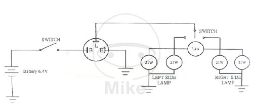 JMP Blinkrelais Polanzahl: 3 Poliger Flachstecker-Anschluss Betriebsart: Elektronisch Nennspannung: 6 Volt Schaltleistung: 2 x 21 Watt + 3,4 Watt Anschlüsse: E = Masse B = Batterie L = Schalter Blinkfrequenz: 85 pro Minute