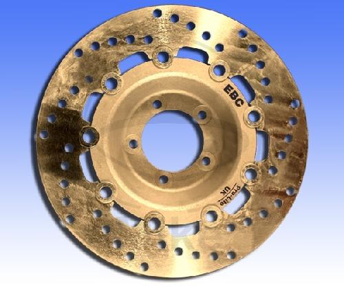 Ziel bei der Entwicklung ist die Verbesserung des Bremsverhaltens gegenber der Originalbremsscheibe. EBC verwendet HPSR Stahl mit einem niedrigen Kohlenstoffgehalt, der einen um 18% Höheren Reibbeiwert besitzt. Dieser Stahl ist wesentlich widerstandsfähiger gegen Rost als Gussstahl. Zusätzlich ist die gesamte Oberfläche mit einer 3 Mikron dicken Zinkschicht geschützt, die sich im Bereich der Bremsbelagkontaktzone schon beim Einbremsen abschleift. Lediglich in diesem Bereich kann sich leichter Flugrost bei längerer Standzeit bilden.