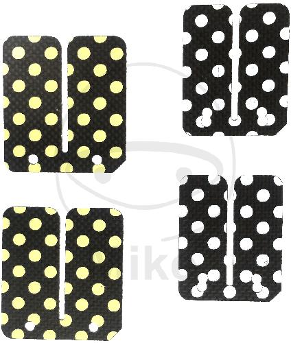 Zur Unterscheidung untereinander und mit anderen evtl vorhandenen Membranen farblich markiert. Carbonmembranen verursachen im Gegensatz zu Metallmembranen im Falle eines Abrisses keinen Motorschaden, da sie einfach zermahlen werden und durch den Auslass ausgestossen werden.