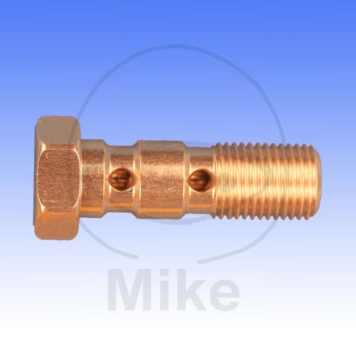 Die Doppelhohlschraube ist aus Aluminium, Farbe silber. Die Schraube hat die Grösse M10 x 1,00 mm.