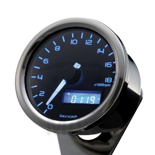 DAYTONA Digitaler Drehzahlmesser VELONA, rund D. 60 mm, bis 18.000 U/min, mit Halter, blaue Hintergrundbeleuchtung.