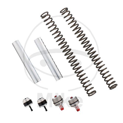 Das YSS Gabel Upgrade Kit enth„lt eine straffe, progressiv gewickelte Gabelfeder sowie ein Gabelventil und einen einstellbaren Gabelholmverschluss.Das Gabelventil ver„ndert den ™lfluss in der Gabel in beide Richtungen und die Gabelfeder bewirkt ein strafferes Federverhalten.Mit dem Holmdeckel l„sst sich die Federvorspannung der Gabel nochmals fein einstellen: Durch drehen der Einstellschraube erh”ht sich der Druck und damit die Vorspannung der Gabelfeder.YSS liefert dieses Kit fahrzeugspezifisch im ganzen Satz aus.