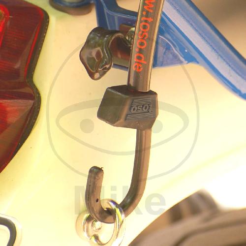 Der elastische Teil des Riemens ist mit dem festen Teil innerhalb des Hakens verbunden, was zus„tzlich Reiásicherheit gibt. Auáerdem wird dadurch das Verkratzungsrisiko von Lackteilen am Motorrad verhindert.