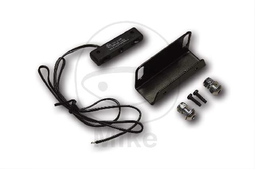 Schwarzer Haltewinkel aus Aluminium inklusive E-geprüfter Kennzeichenleuchte mit 3 LEDs, zur Befestigung an unsere Highsider Kennzeichenhalter mit den Art.-Nr. 280-xxx.