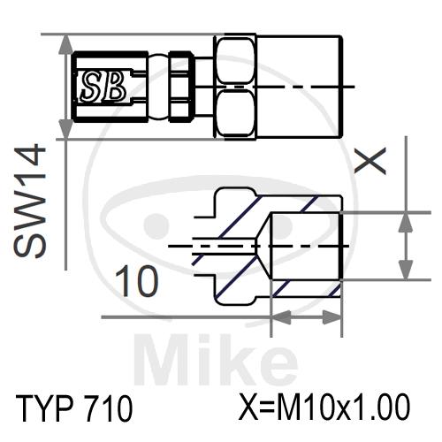 Fitting für Speed Brakes Stahlflex Vario Leitung - Innengewinde - fest - Gewinde M10 x 1.00 - Schlüsselweite 14 - Länge Gewinde 10 - Länge 20 mm - Farbe: schwarz