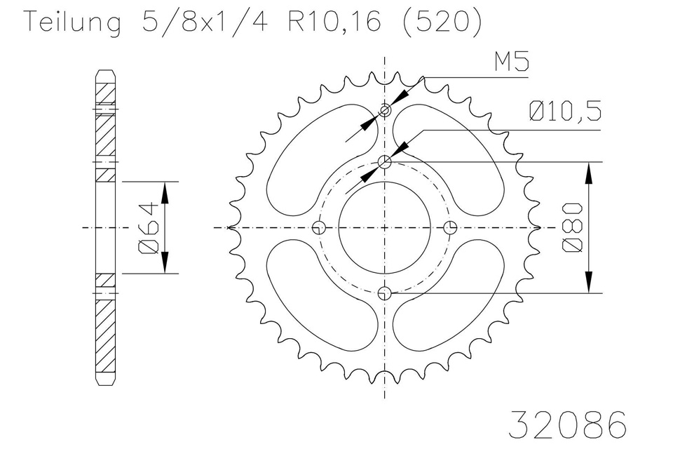 Kettenrad 28 Zähne Stahl 520er Teilung (5/8x1/4)