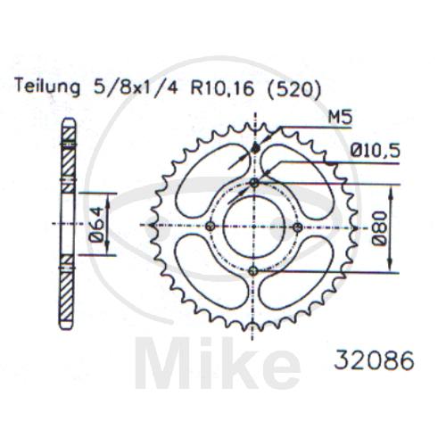 Kettenrad, 28Z, Teil.: 520 schwarz, Innen Ø : 064, Lochkr.: 080