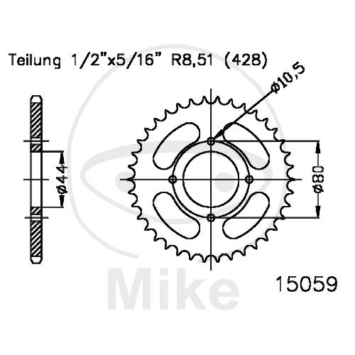 Kettenrad, 30Z, Teil.: 428 schwarz, Innen Ø : 044, Lochkr.: 080