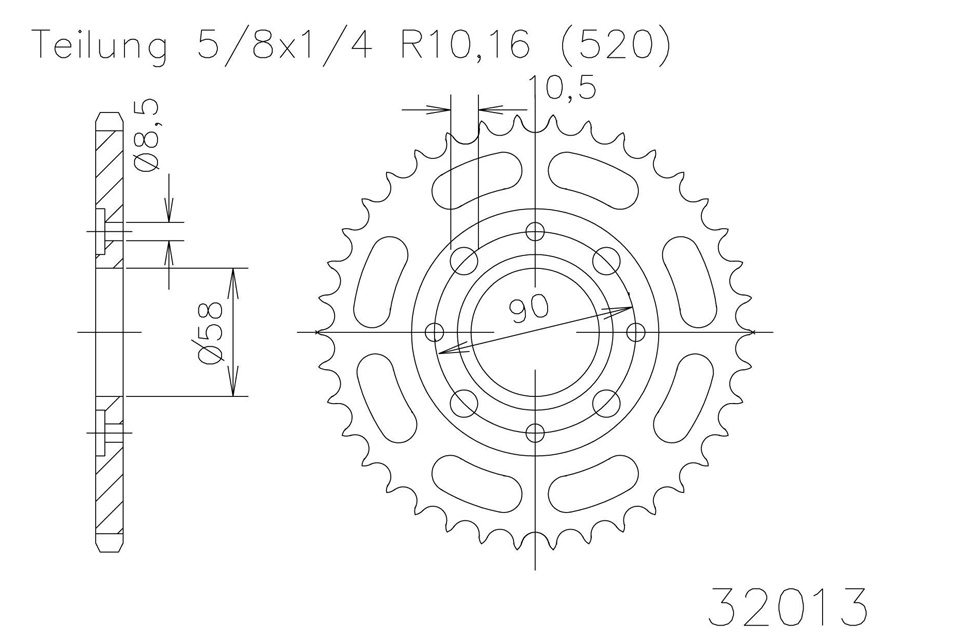 Kettenrad 31 Zähne Stahl 520er Teilung (5/8x1/4)