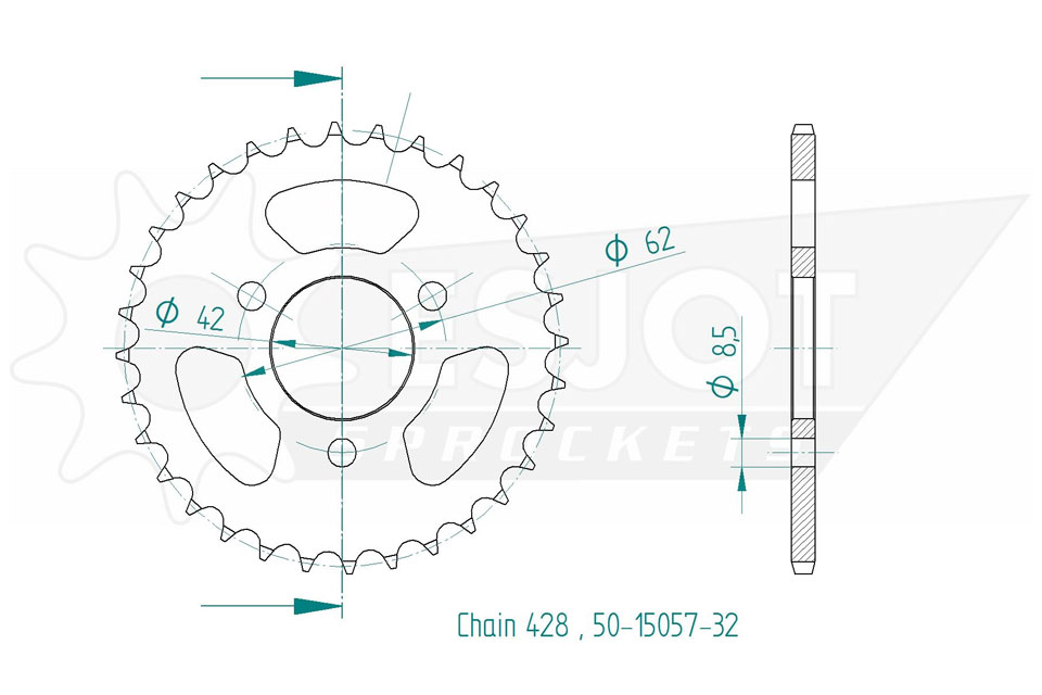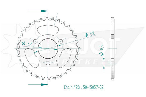 Kettenrad 32 Zähne Stahl 428er Teilung (1/2x5/16)